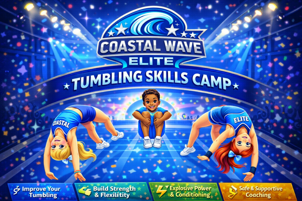 Take your skills to the next level at our All-Star Skills Intensive Summer Camp. This high-energy, technique-focused camp is designed for athletes who want to improve their tumbling, flexibility, conditioning, and jump technique in a structured, supportive training environment. Throughout the week, athletes will participate in progressive skill training led by experienced all-star coaches. Each day includes focused rotations that break down technique, reinforce fundamentals, and build strength for safe, consistent skill development.